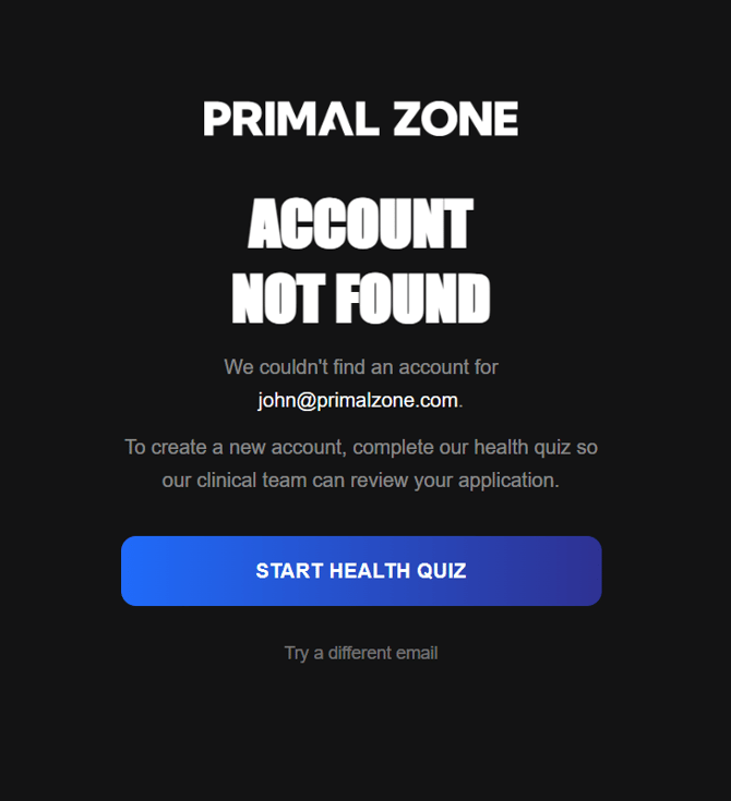 You're not a patient yet You'll see an "Account Not Found" message with a link to start our health quiz. Once you complete the quiz, you'll be set up and can sign in.