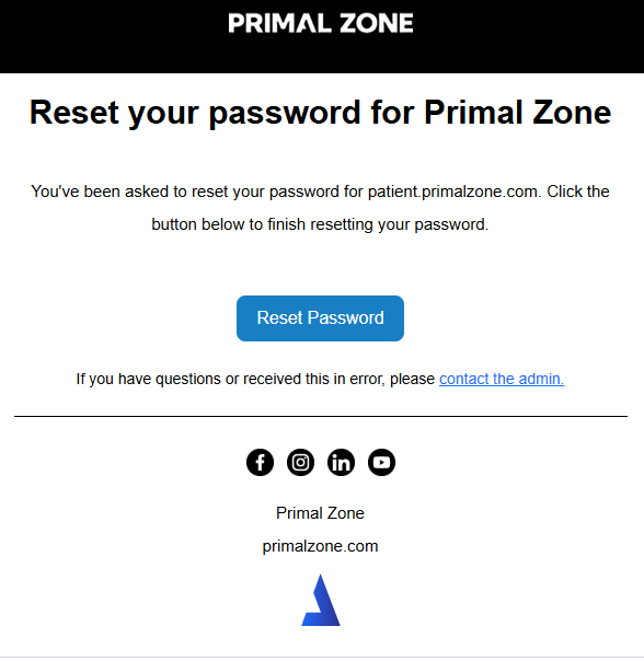 - You should have received an email with the subject line “Password reset email” from The Primal Zone Team (noreply@primalzone.com.au). If you can’t find it, please check your spam, junk, or other folders, as it may have been misdirected. You can also search for noreply@primalzone.com.au in your search bar in your inbox to quickly locate all emails from Primal Zone, including the password reset email.