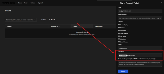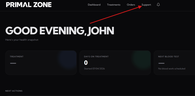 - Click the “Support” tab at the top of the portal