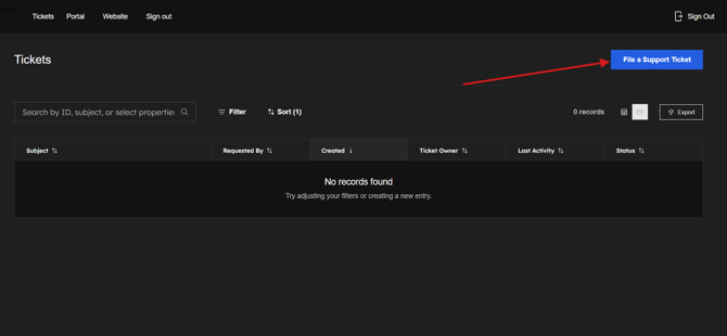 - Click “File a Support Ticket” to contact the team
