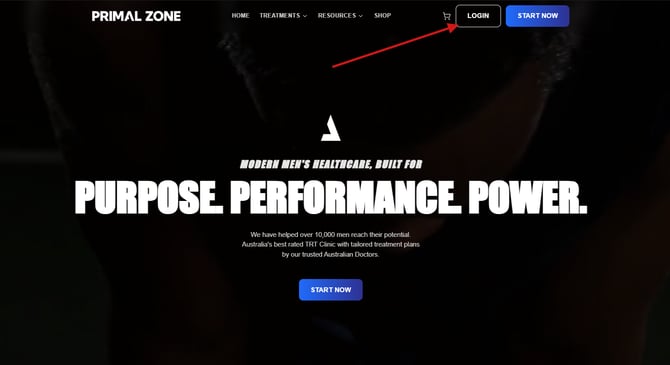 Go to https://primalzone.com and click “Login” in the top right corner of the screen.