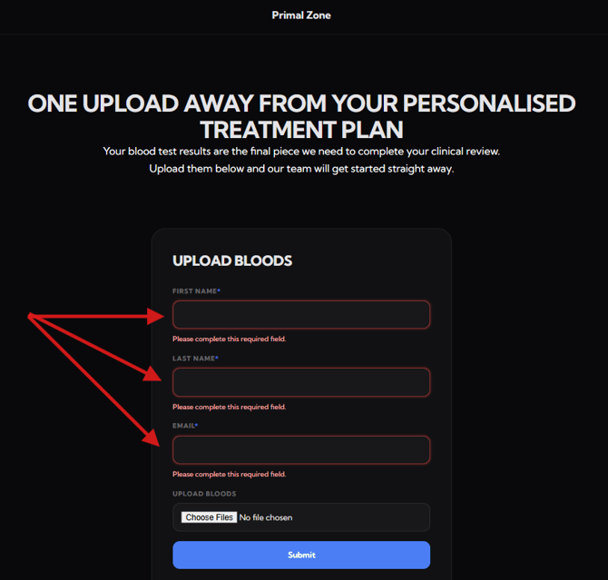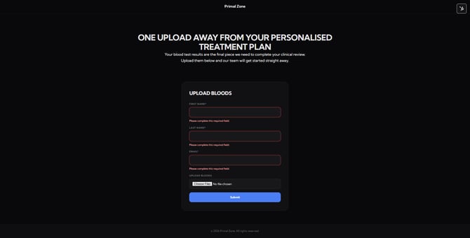 Click on this link: https://patient.primalzone.com/upload-bloods