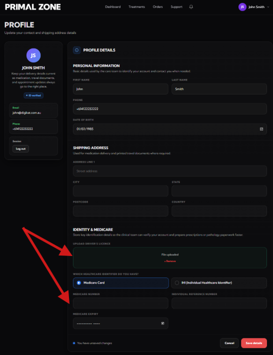 To complete your profile and allow the clinical team to proceed with your treatment, you’ll need to upload your identity and Medicare details.