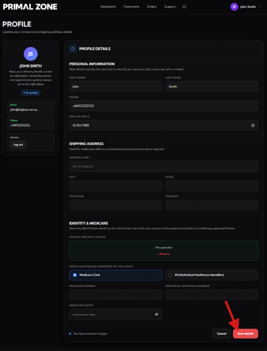 If you experience any issues uploading your Identity and Medicare details, please reach out to support and our team will assist you.