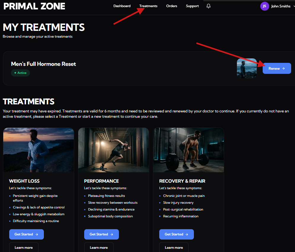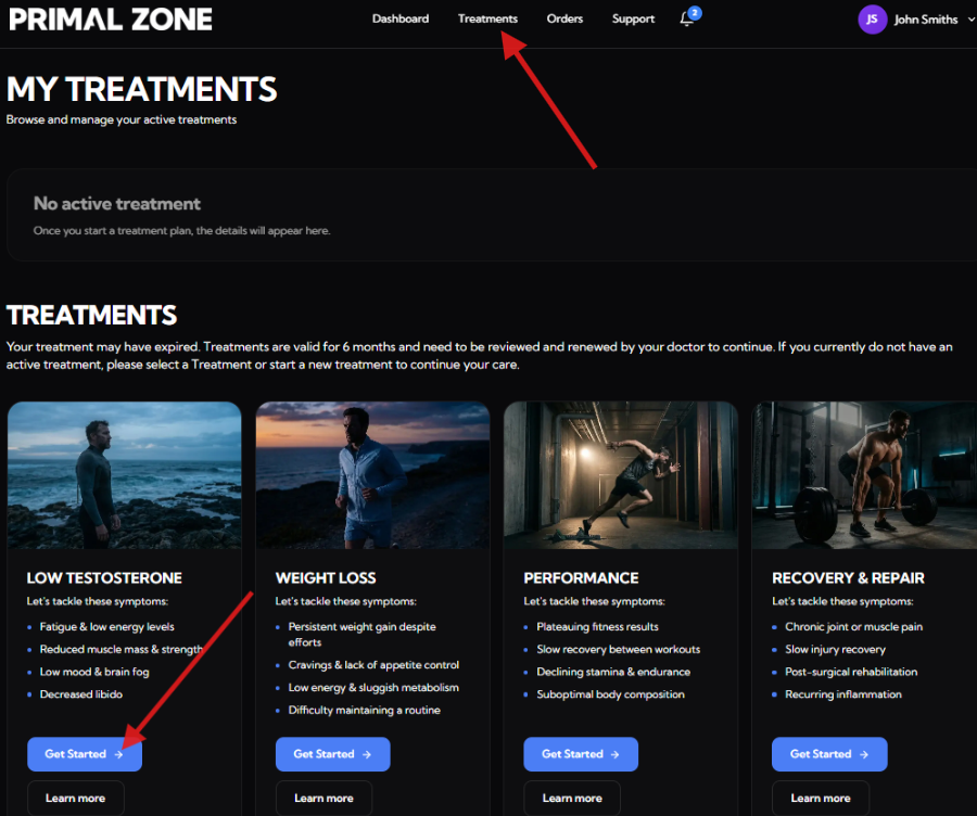 - Start a new treatment by clicking “Get Started”
